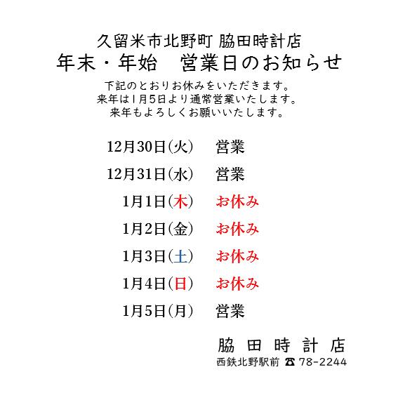 いらっしゃいませ。毎度ありがとうございます。 福岡県久留米市にある脇田時計店です。